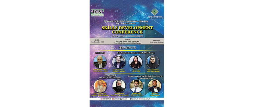 Venue: Dr. Abdul Qadeer Khan Auditorium, Federal Urdu University, Gulags Campus.